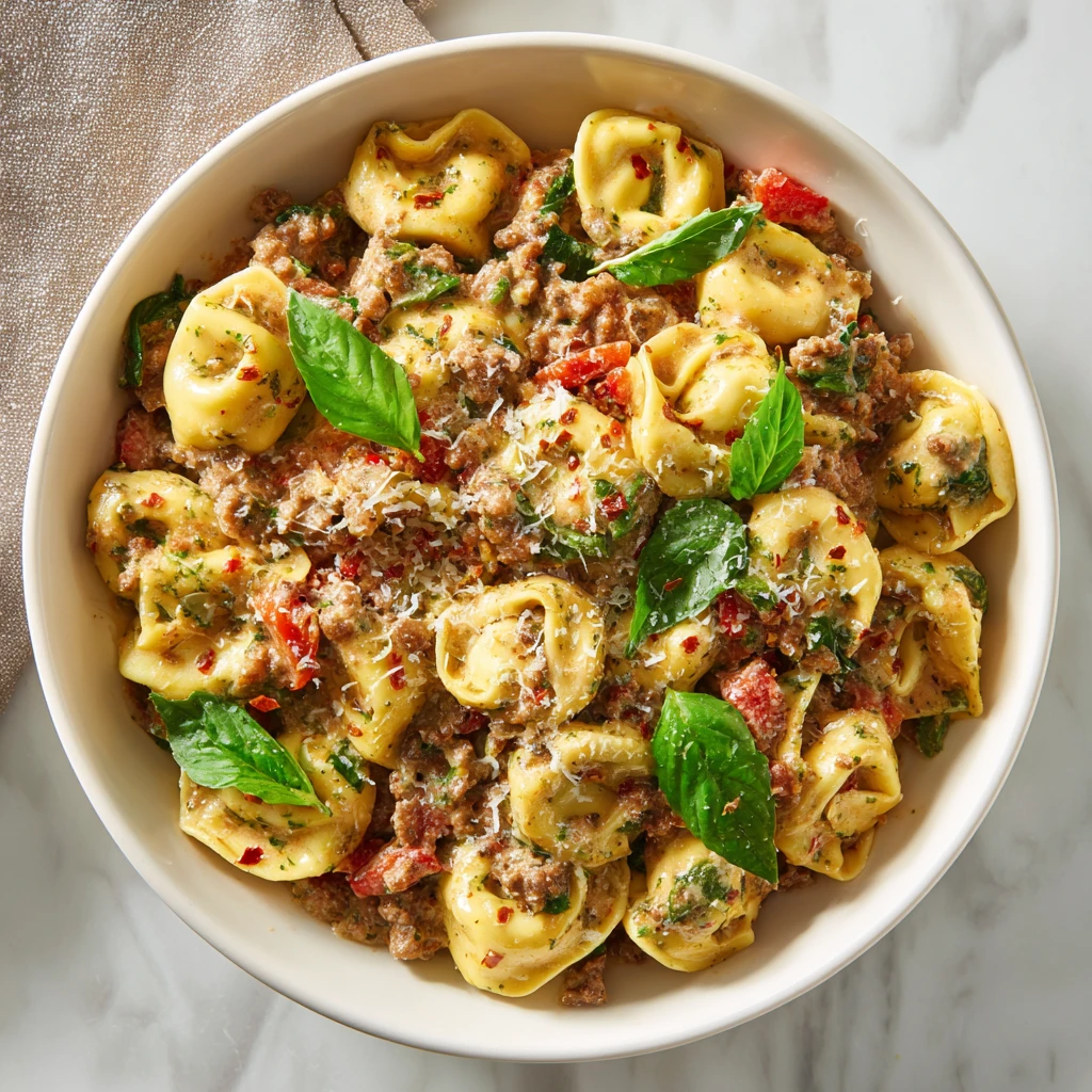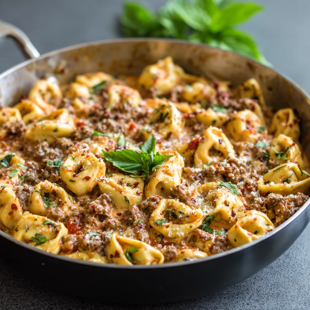 Ground Beef Creamy Pesto Tortellini