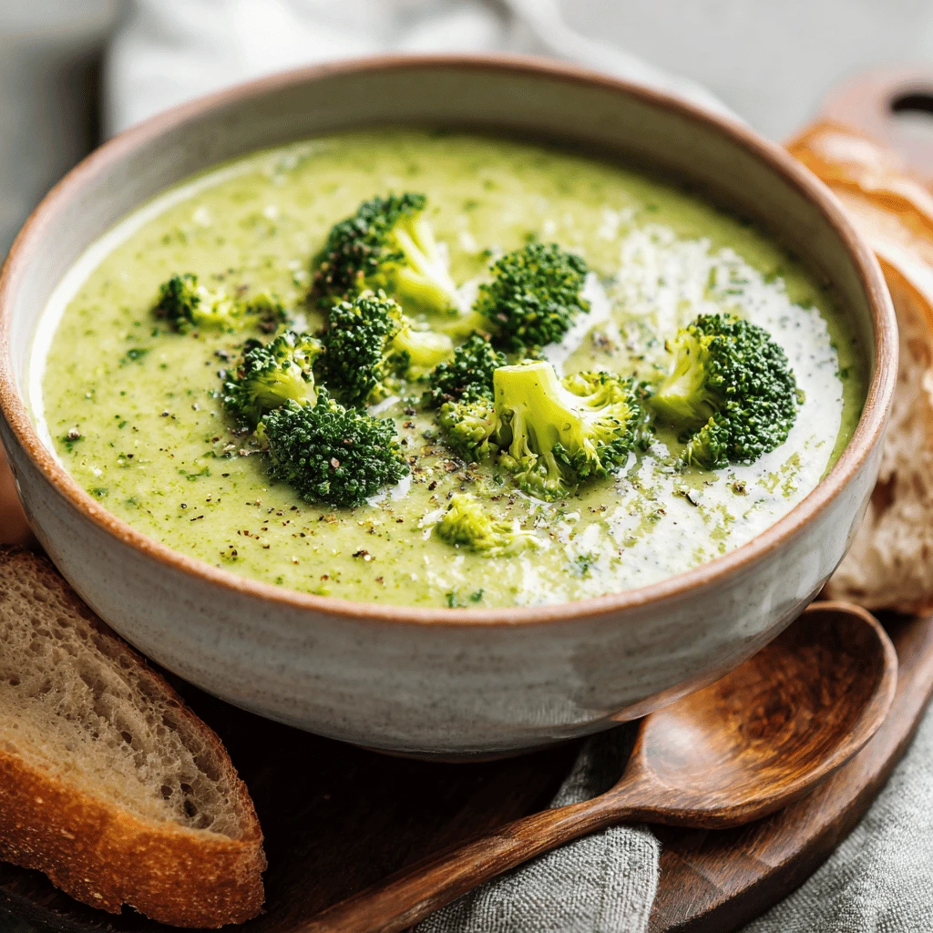 Broccoli soup pairs well with crusty bread, grilled cheese sandwiches, or a side salad.