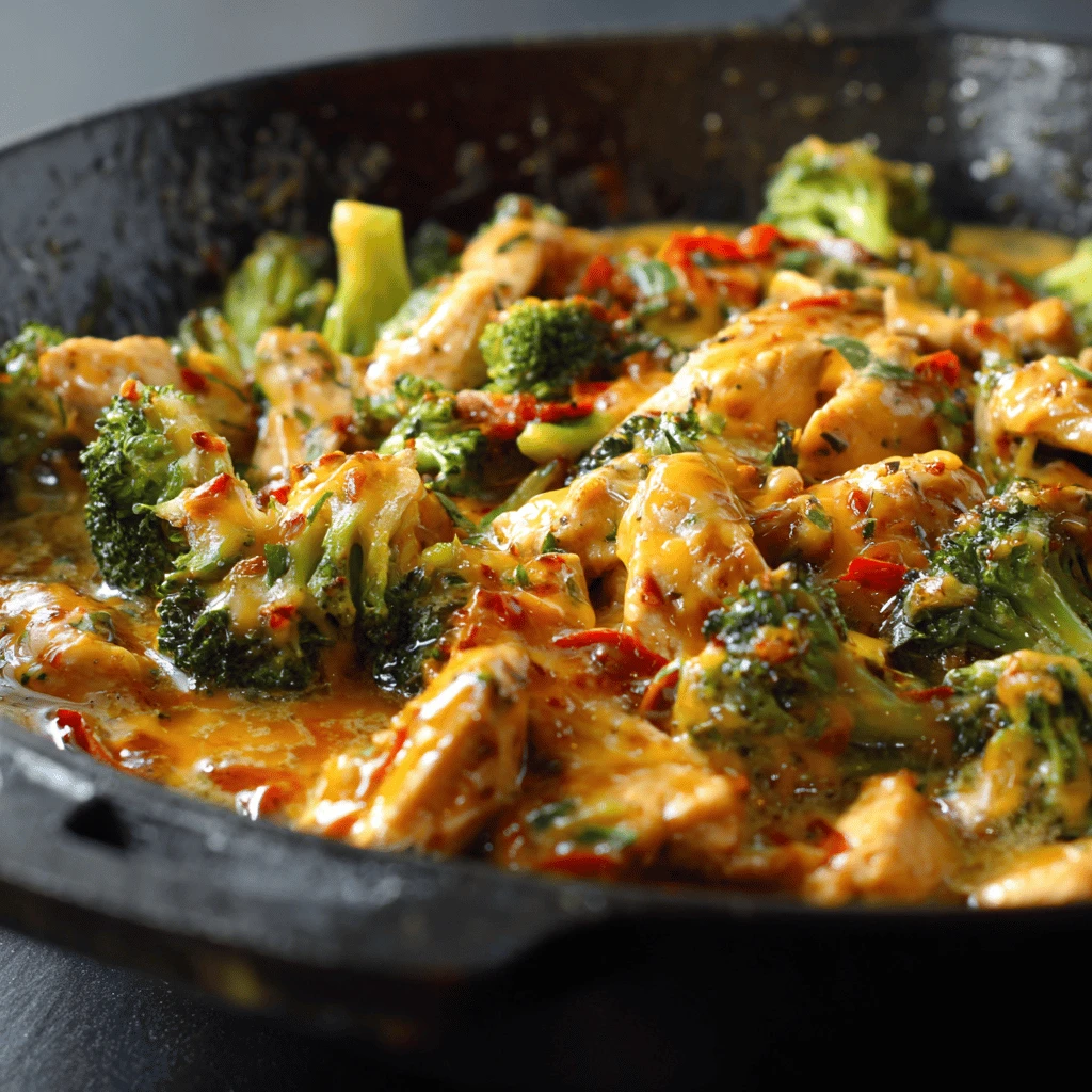 6. Combine and Simmer: Return the chicken to the skillet with the vegetables. Pour the sauce over the mixture and bring to a simmer. Cook for 1-2 minutes, or until the sauce has thickened.