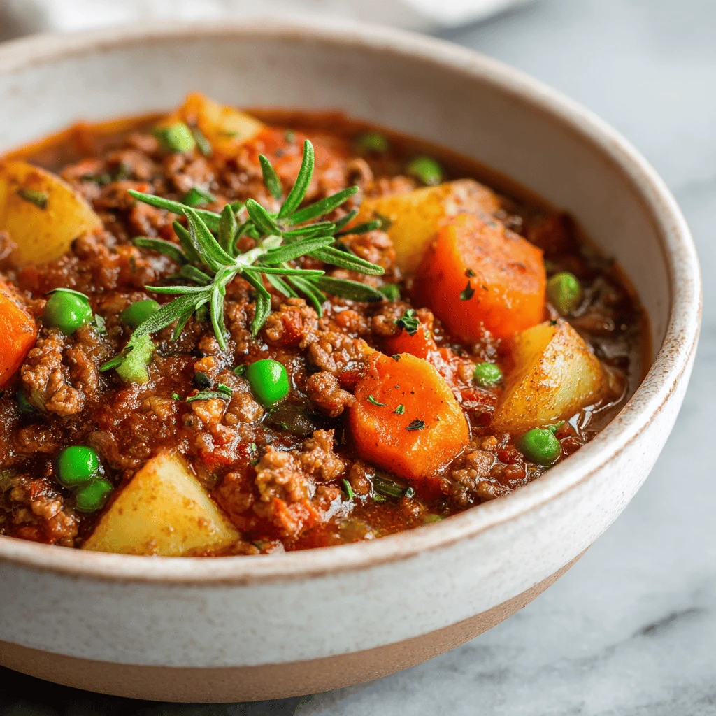 3. Combine Ingredients: Transfer the browned ground beef and sautéed vegetables to your crockpot. Add the beef broth, potatoes (or your chosen substitute), thyme, rosemary, and bay leaf. Stir to combine.