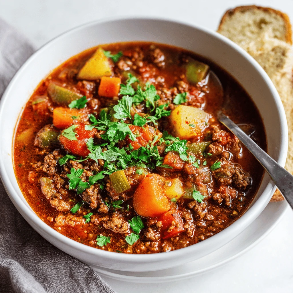 1. Brown the Beef: In a skillet over medium-high heat, brown the ground beef. Drain off any excess fat. This step adds depth of flavor to the stew. Season with salt and pepper while browning.