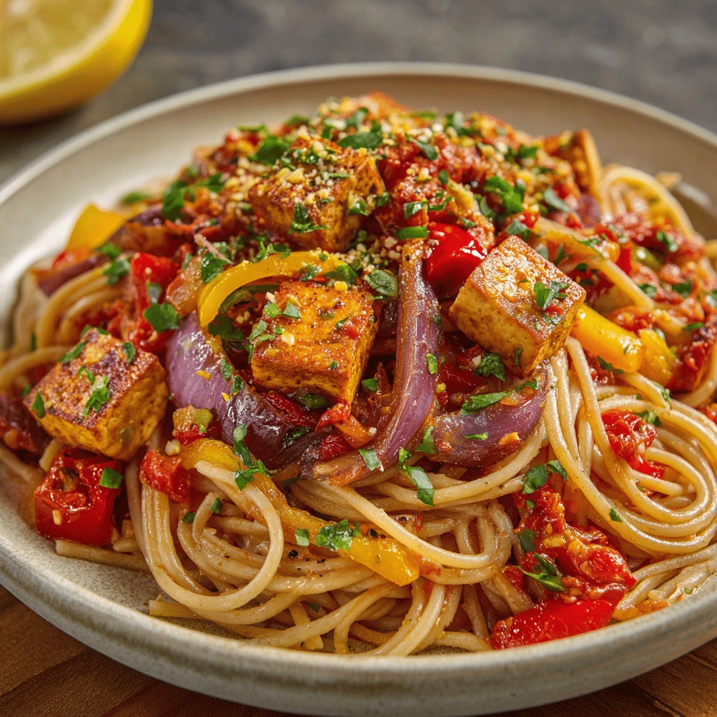 13. Serve immediately, garnished with your choice of toppings like crumbled vegan feta cheese, pine nuts, or a drizzle of balsamic glaze.