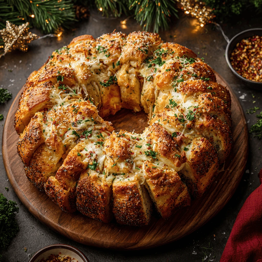 Holiday Cheesy Garlic Pull-Apart Bread Wreath