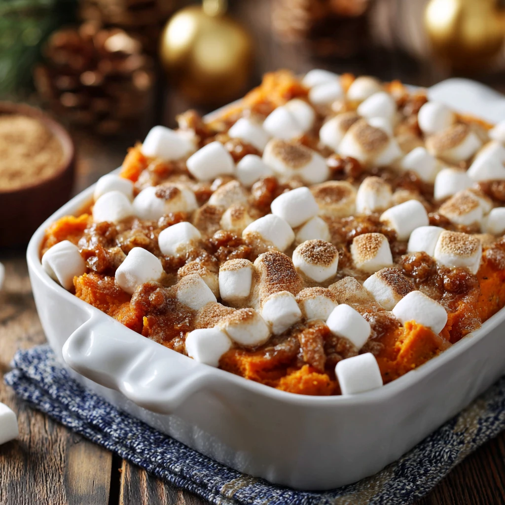 It’s a comforting dish that balances the earthy sweetness of sweet potatoes with the sugary delight of toasted marshmallows.