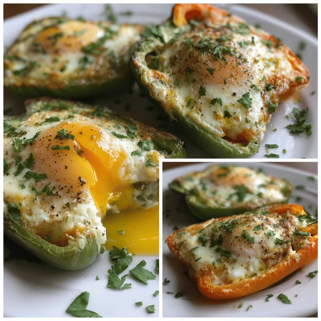 4. Fill Peppers: Arrange the pepper halves in a baking dish. Pour the egg mixture evenly into each pepper half.