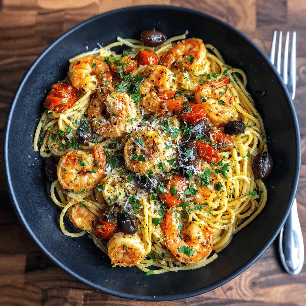4. Combine Ingredients: In a large bowl, combine the cooked pasta, shrimp, sun-dried tomatoes, Kalamata olives, feta cheese, parsley, lemon juice, and lemon zest. Toss well to ensure all ingredients are evenly distributed.