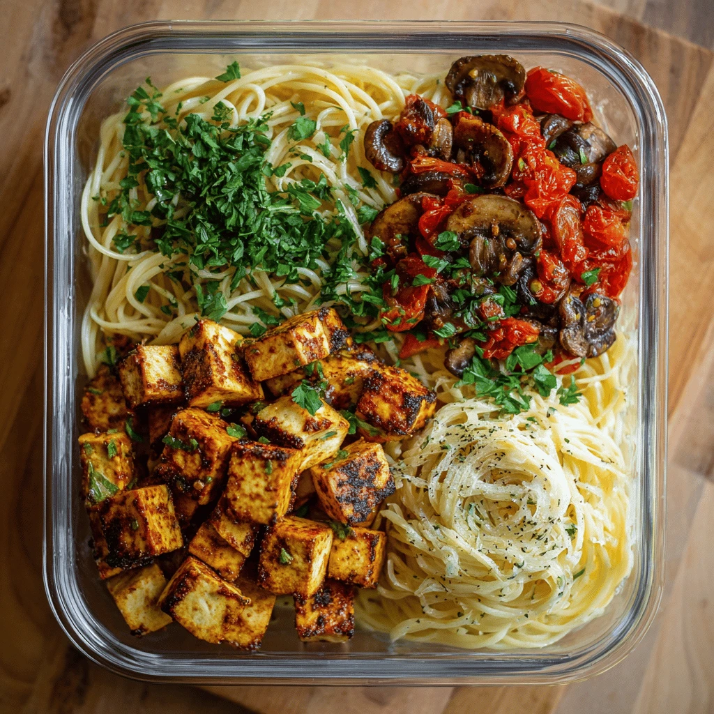 Follow these steps to create a delicious and satisfying Mediterranean Tofu Pasta that’s perfect for meal prepping.