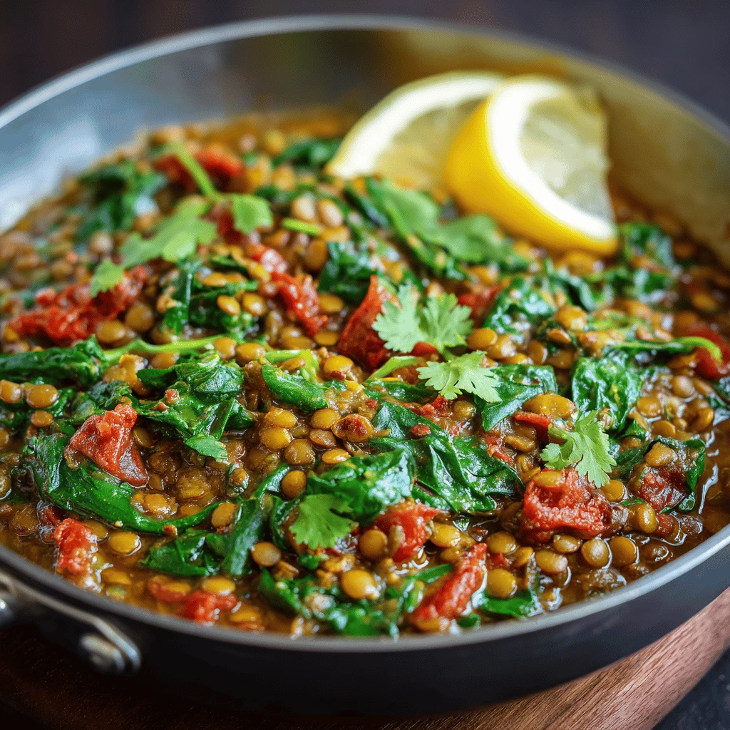 This Mediterranean lentil spinach curry is delicious served on its own as a hearty and satisfying meal.