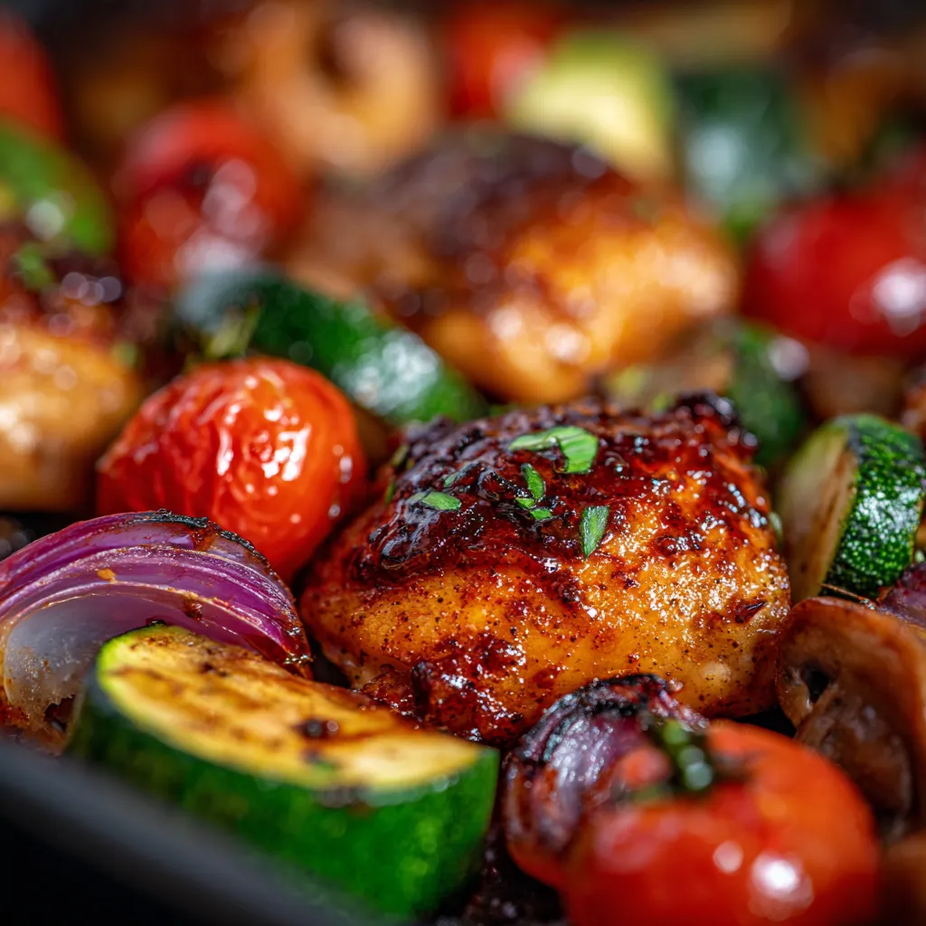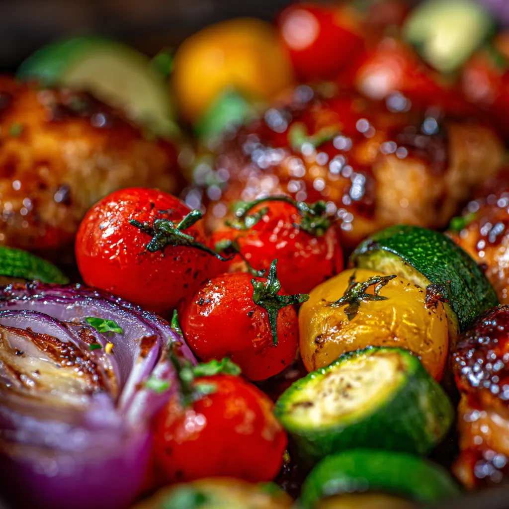 • Visually Stunning: The vibrant colors of the roasted bell peppers, zucchini, and cherry tomatoes, alongside the beautifully caramelized chicken, make for an incredibly appetizing presentation. It looks like you put in so much more effort than you actually did!