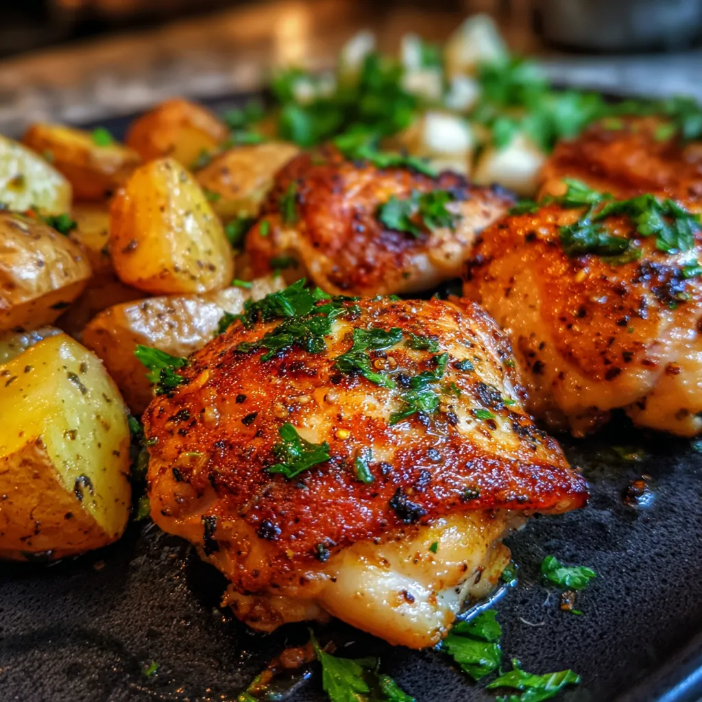 Best Ever Garlic Parmesan Chicken Thighs and Potatoes: Easy One-Pan Meal