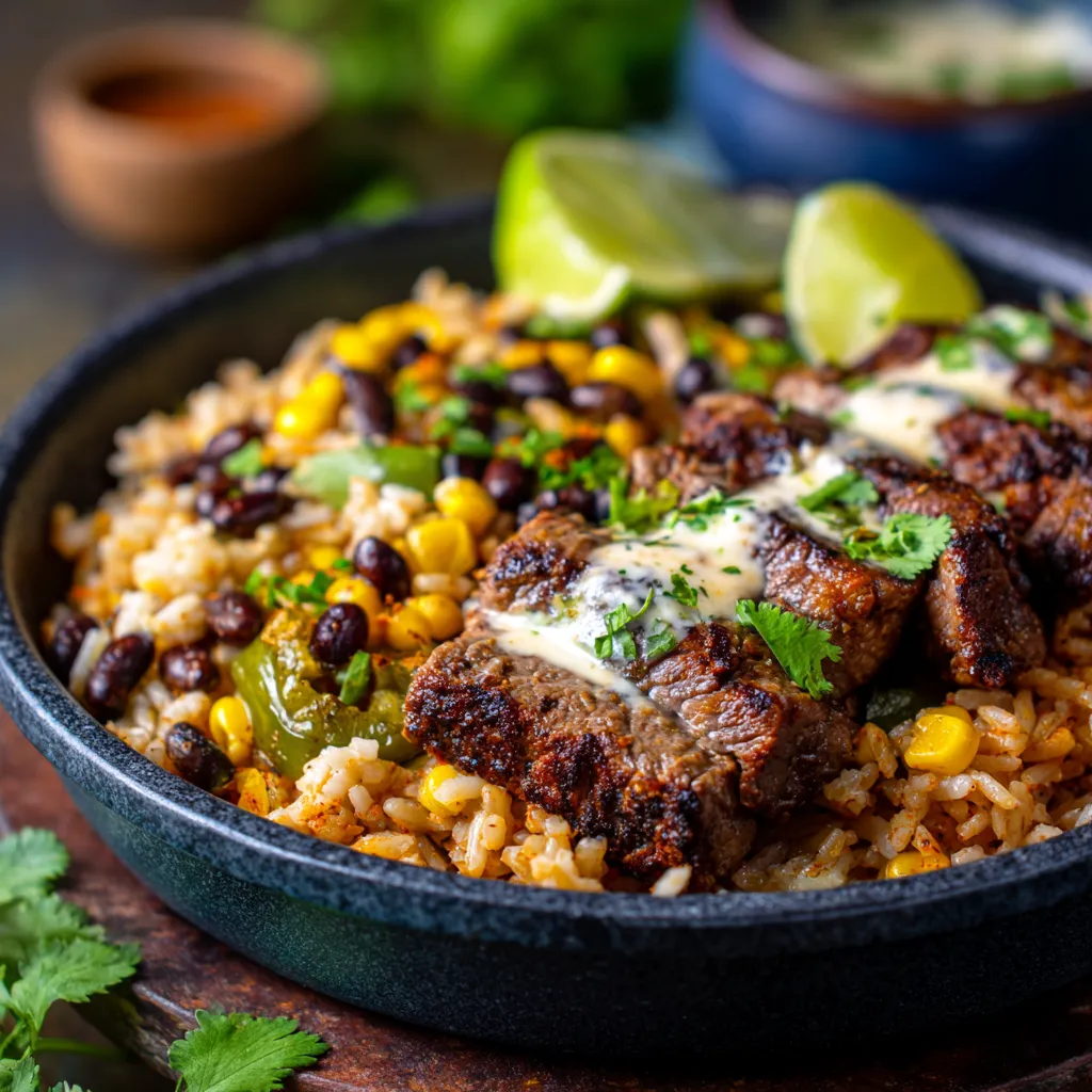 - Budget-Friendly Ingredients: Many of the components are simple pantry staples like rice, beans, and frozen corn. You can opt for a more affordable cut of steak, making this a delicious yet economical meal that doesn’t break the bank.