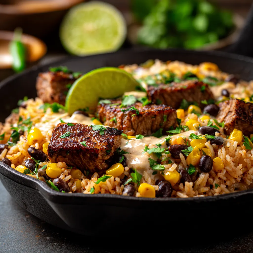One-Pan Steak Queso Rice Skillet (Ultimate Comfort Dinner)