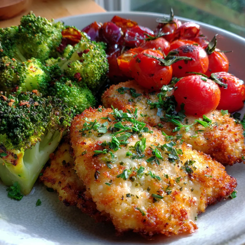- Season in Layers: Don’t just rely on the Parmesan mixture for flavor. Season the chicken itself before coating, and make sure to generously season your vegetables with salt and pepper too. Layers of flavor make all the difference.
