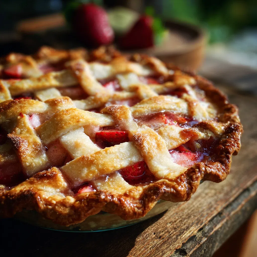 I remember it was a sunny summer afternoon when I first made this pie, using fresh strawberries from our garden and rhubarb from our neighbor’s patch, the smell of sugar and spices wafting through the air as it baked to perfection.