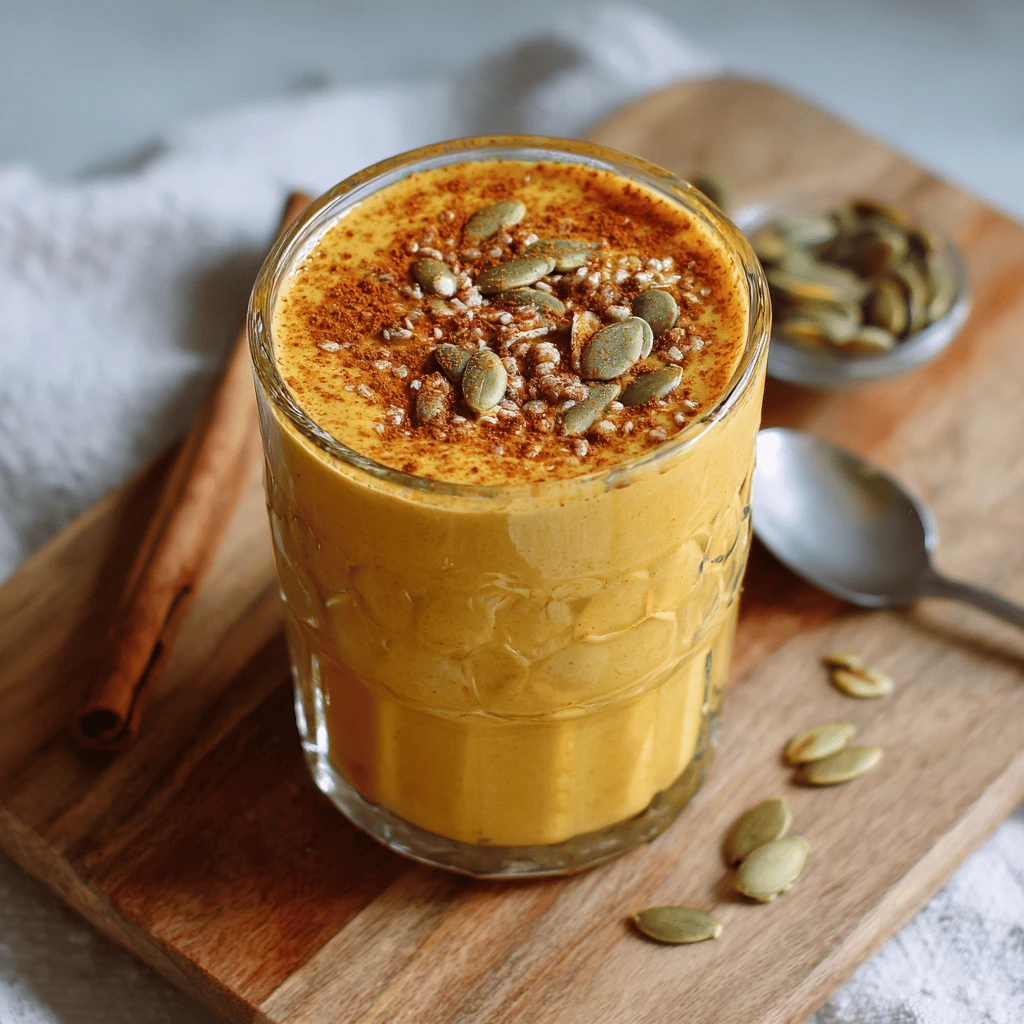 5. Serve: Pour the smoothie into a glass and enjoy immediately. You can garnish with a sprinkle of pumpkin pie spice or a dollop of whipped cream (optional).