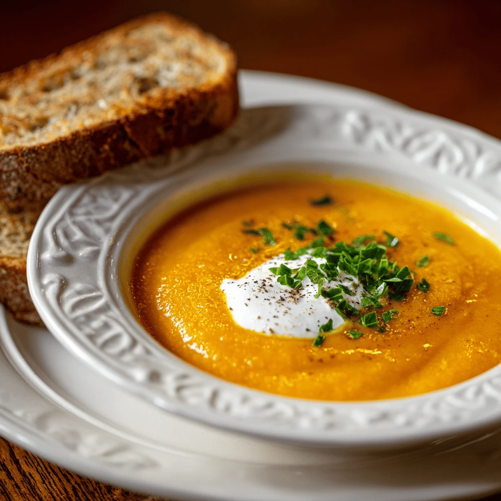6. Serve and Enjoy: Ladle the soup into bowls and garnish with a swirl of cream, toasted pumpkin seeds, a sprinkle of chopped herbs (like parsley or thyme), or a drizzle of olive oil.