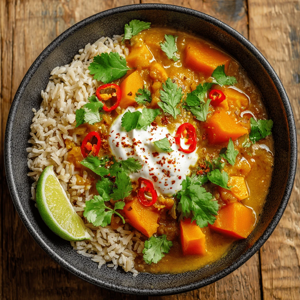 This recipe excels because it marries the convenience of a slow cooker with the rich, comforting flavors of Indian-inspired cuisine. The pumpkin lends a natural sweetness and creamy texture, while the curry spices provide warmth and complexity. Using a slow cooker allows all the flavors to meld together beautifully, resulting in a deeply satisfying dish with minimal effort. The dish is also naturally vegan and gluten-free, making it suitable for a variety of dietary needs. The flexibility of adding your favorite vegetables and protein sources makes this a customizable meal for everyone.