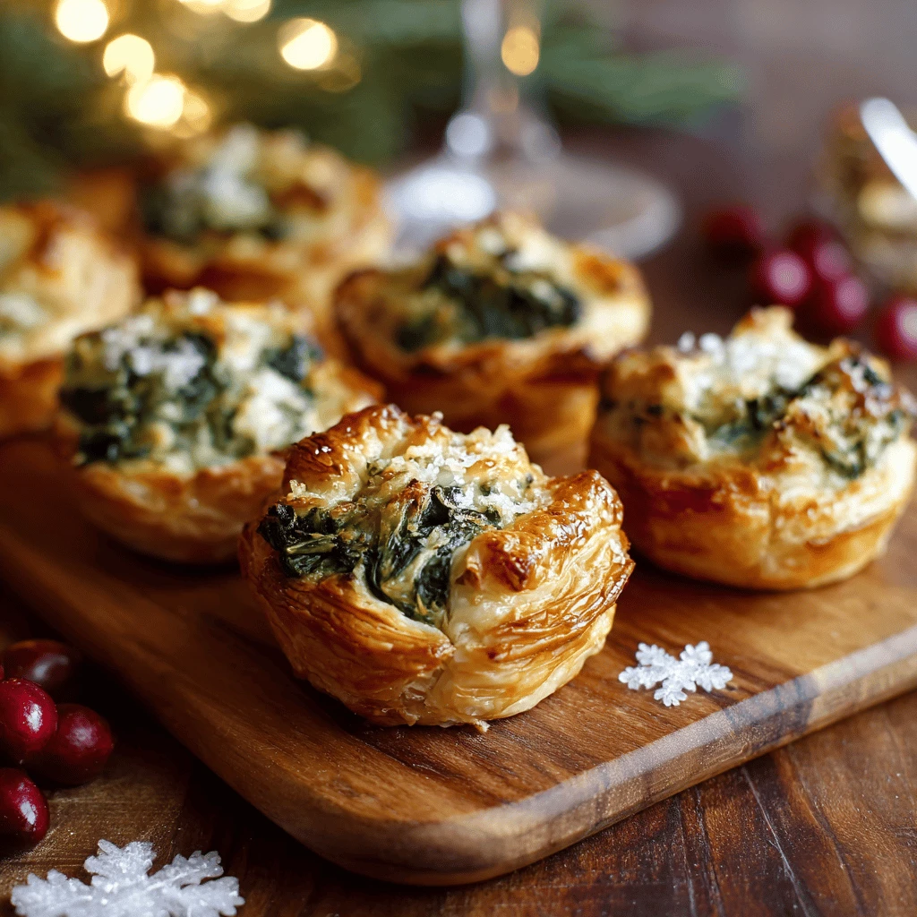 Spinach Artichoke Dip Mini Cups with Puff Pastry Thanksgiving Appetizers