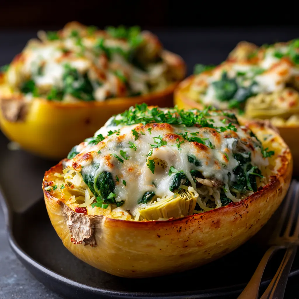 Spinach Artichoke Stuffed Spaghetti Squash: Easy & Healthy