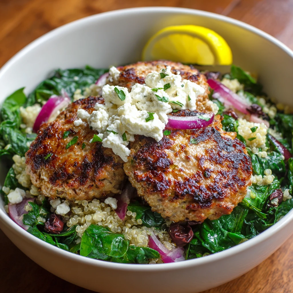 These Spinach Feta Turkey Burger Bowls are a healthy, flavorful, and customizable meal that’s perfect for a quick weeknight dinner or meal prepping for lunch.