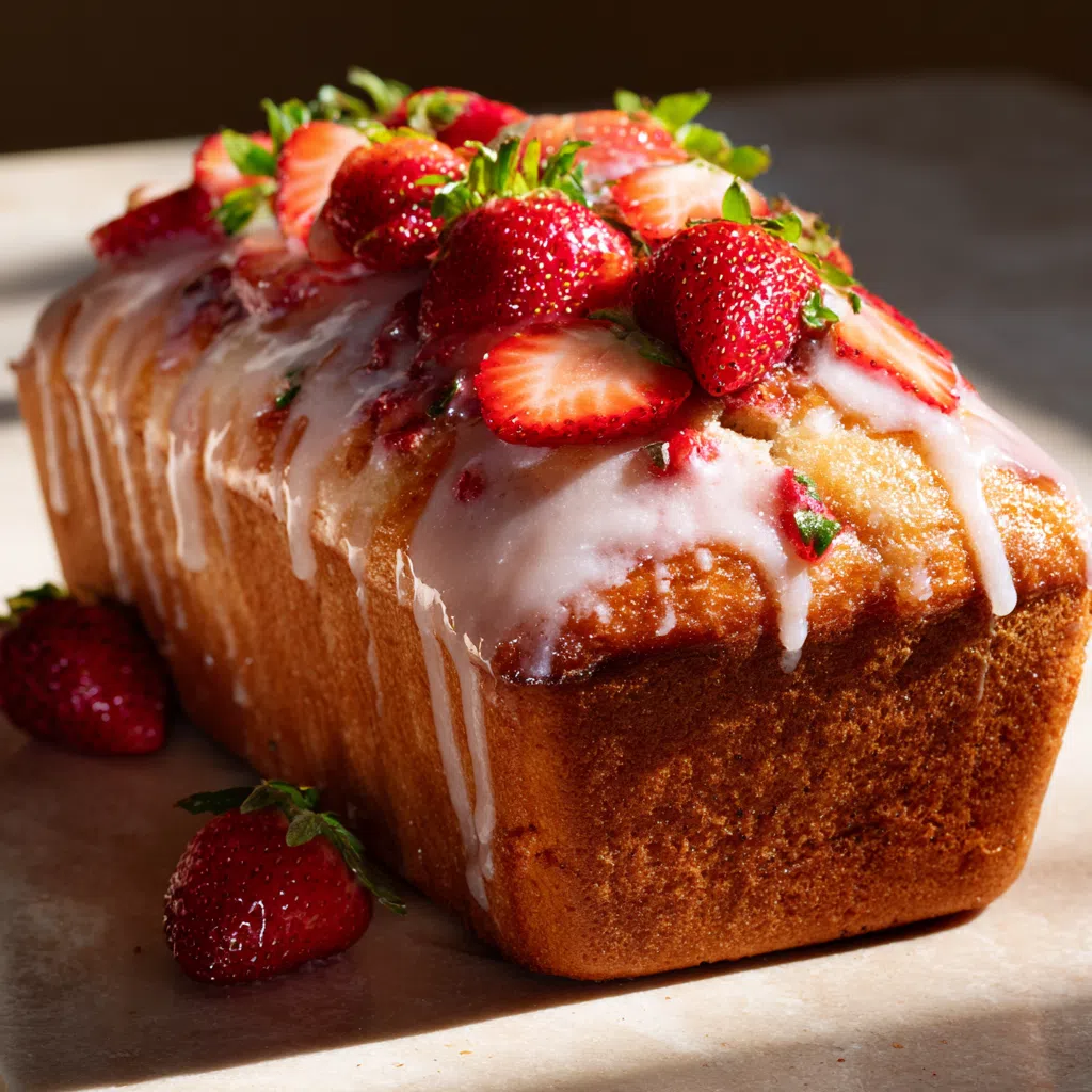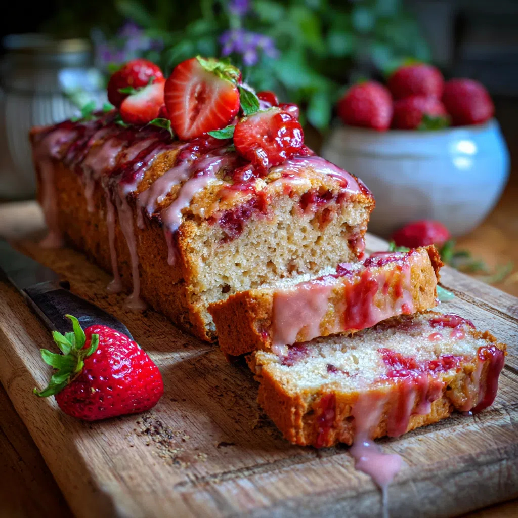 Imagine walking into a warm kitchen filled with the sweet aroma of fresh strawberries and the tender crumb of a just-baked loaf, the scent of strawberry glaze wafting through the air, teasing your taste buds.
